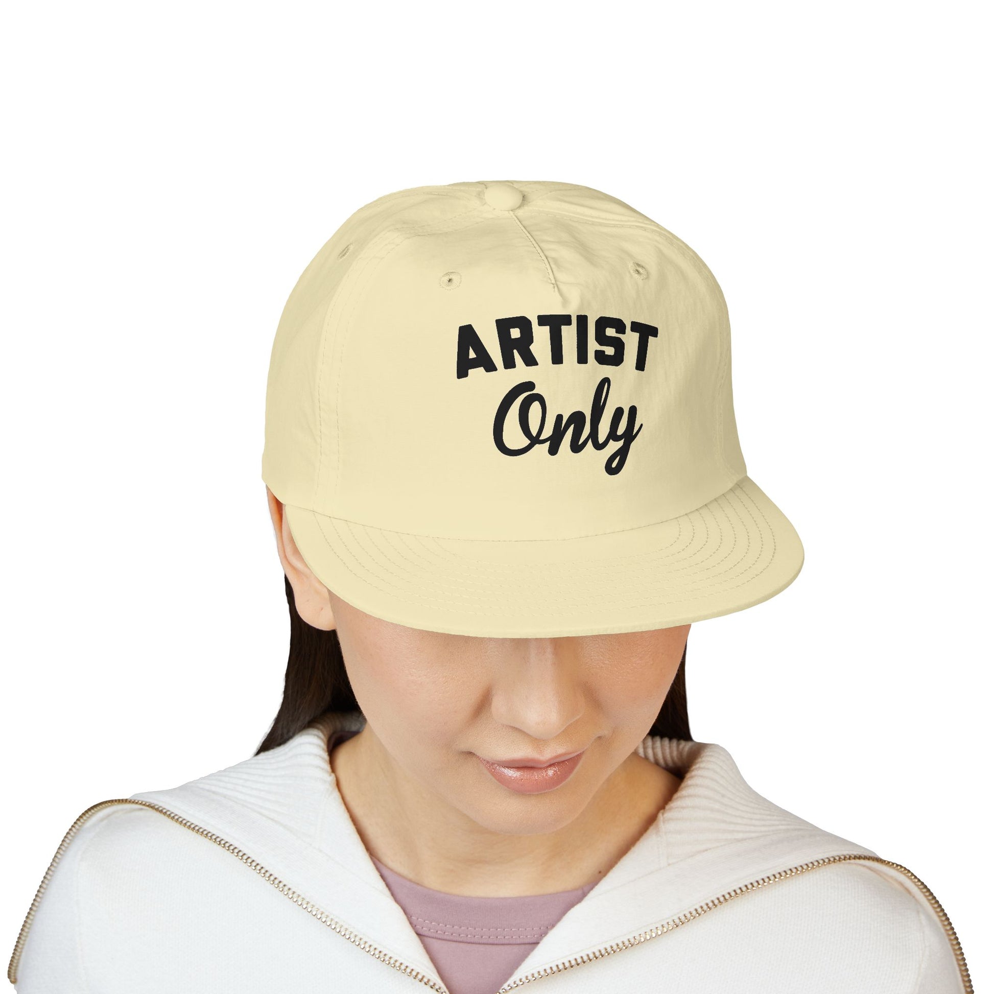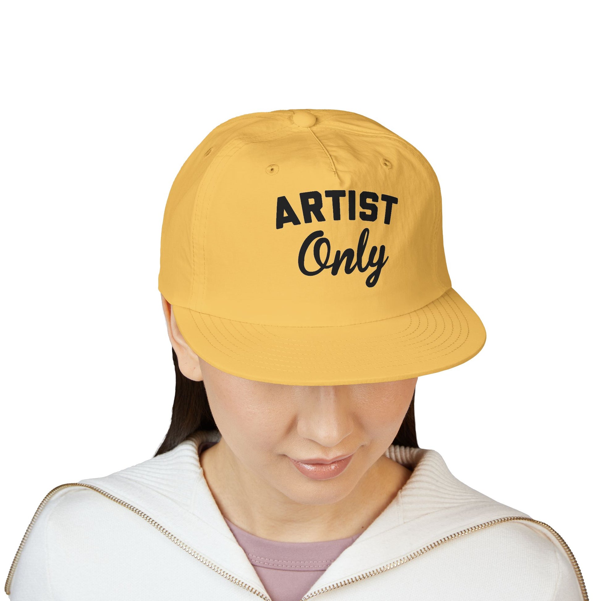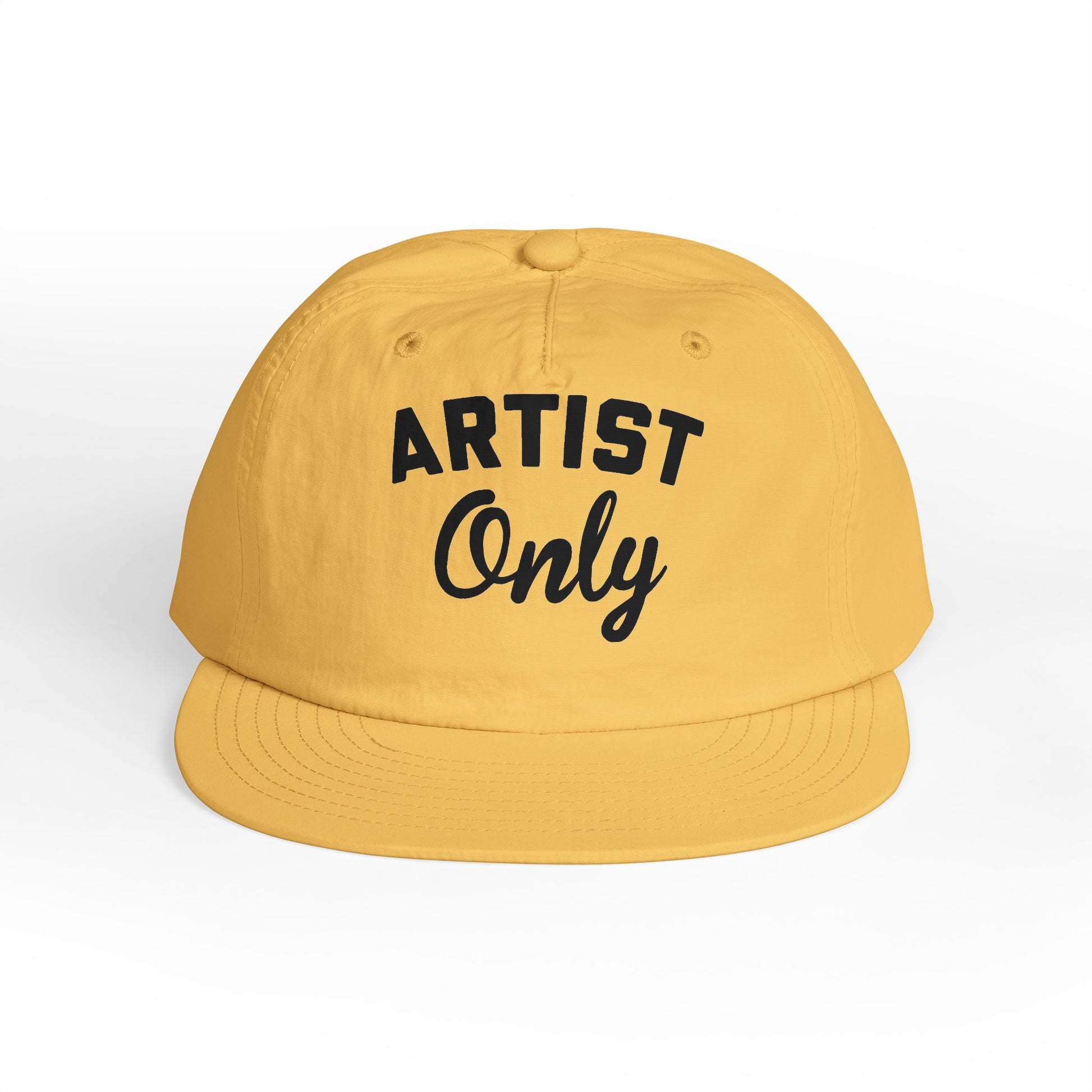 This Surf Cap with Artist Only logo comes in many colors, perfect for those who love to hit the waves and catch some surf. Made of 100% recycled nylon, this cap is soft, comfortable, and quick-drying. It's ideal for adults looking for a stylish and practical accessory for their outdoor adventures.